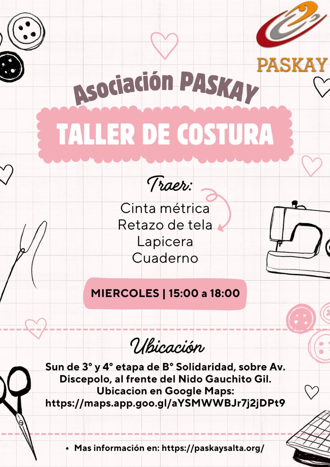 El taller de costura funciona los días miércoles en el SUM de barrio Solidaridad. Allí las chicas se reúnen con Raquel y entre cortes, telas y puntadas, van forjando sus creaciones y cultivando la confianza en ellas mismas. Sus productos les pertenecen y pueden ofrecerlos a través de la Tienda virtual, sin cargo alguno.
